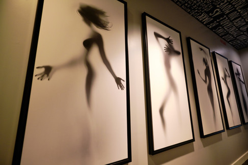 The custom artwork throughout the venue is another highlight of 5Church Buckhead. The Art of War Ceiling, created by local Atlanta native Dr. Dax, features the text from all 13 chapters of The Art of War in black and white paint. Ishtar, by Atlanta artist Amy Rader, is a 27ft art piece that depicts the Babylonian goddess of love and war wearing a Alexander McQueen Rose gown and Dior jeweled headpiece. Egbin II, by Nigerian artist Jonathan Imafidor, features a Yoruba metaphor for beauty with a buck, doe and fawn in a natural setting created from scrap metal, epoxy resin, paint, and silverware from 5Church. Twisted Tree, a custom build by North Carolina artist Brant Harris, features a live peach tree that was reconstructed into an upside-down tree sculpture hanging from the ceiling and adorned with over 300 crystal pendants. Nude Silhouettes, created by Russian artist Elena Bulatova and Las Vegas artist Efi Mashiah as part of the BuMa Project, are five custom silhouettes that add a touch of elegance to the venue. These artworks, along with the venue's other unique design elements, make 5Church Buckhead a truly one-of-a-kind private dining experience in Atlanta.