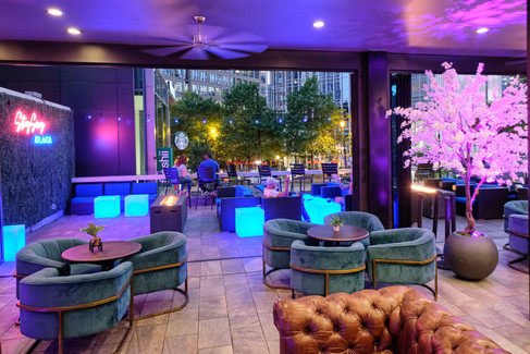 Virtue Rooftop is a 21+ rooftop lounge located on Peachtree Street in the heart of Atlanta's Midtown Business District. Perched atop the popular restaurant 5Church Midtown, Virtue is designed to be the perfect spot for drinks before or after dinner downstairs, or to be the destination for a night out on the town with friends. The space is designed to be both elegant and comfortable, with comfortable seating and plenty of room to move around. The outdoor rooftop terrace is the real star of the show at Virtue, offering breathtaking views of the city that are truly unmatched. The terrace is half covered and enclosed with nano walls that allow us to open it completely during the spring and summer months or keep it closed off with heating, making it a popular destination year-round. These walls are crucial in allowing us to provide a comfortable and enjoyable experience for our guests, no matter the weather. The terrace is also equipped with rooftop fire pits, adding a cozy and intimate ambiance to the space, perfect for enjoying during the winter months. The terrace also boasts an iconic "Stay Sexy Atlanta" neon sign which is a popular spot for pictures and a favorite filming destination for TV and movie productions like HBO, Bravo, MTV, TLC, Netflix, and more.